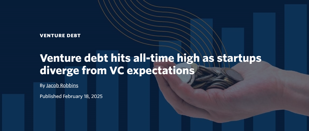 The venture debt market just hit an all-time high, and we’re not surprised. According to Pitchbook, the alternative financing instruments reached a record $53.3 billion in 2024, nearly doubling from 2023. This surge is driven by later-stage startups turning to alternative financing to balance sustainable growth without the pressure of hypergrowth that traditional VC often encourages.